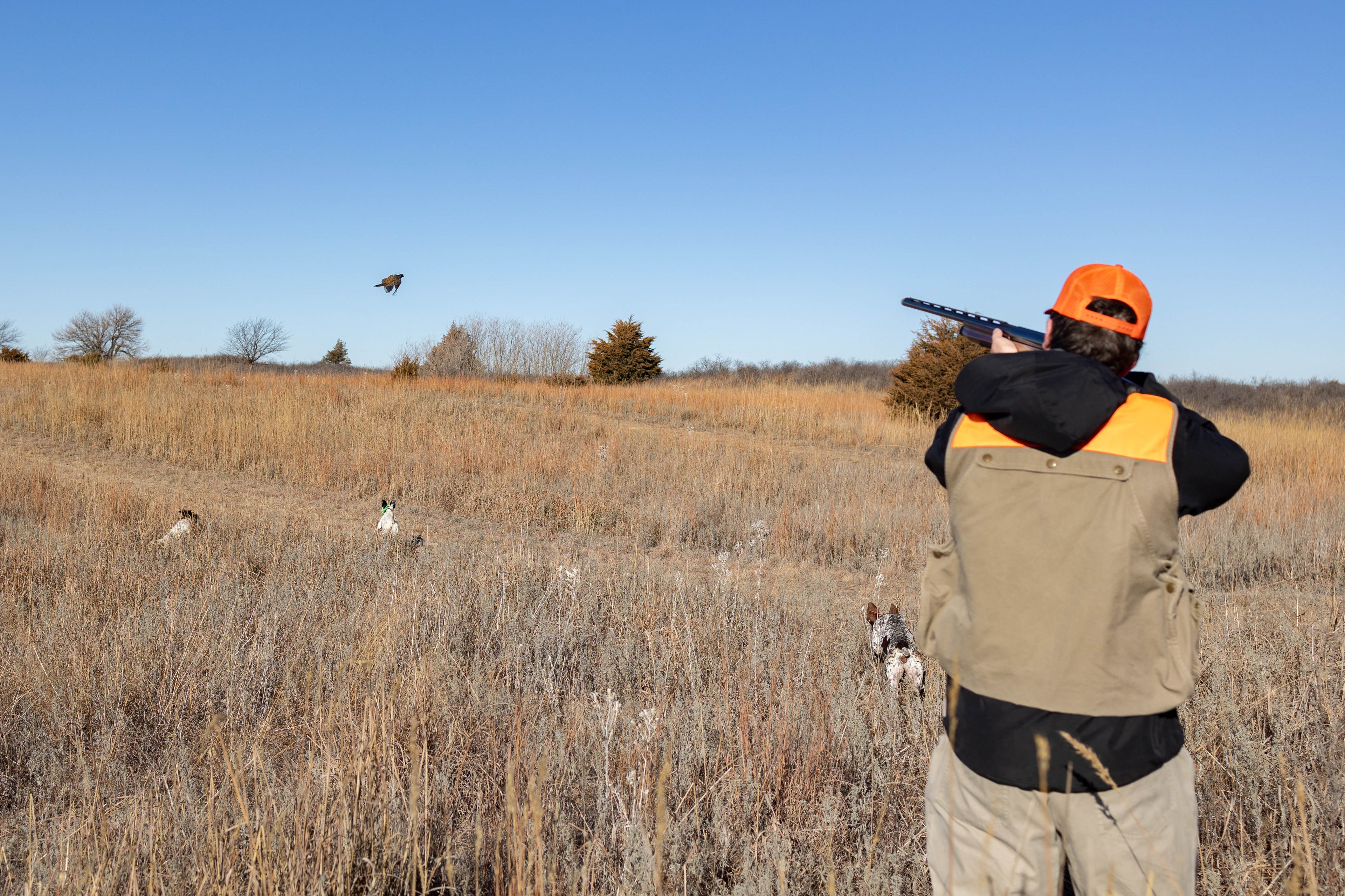 Yes, per our “Hunter Orange” policy (backlink this to the policy), we require each hunter (and anyone else in the field) to wear a minimum of a hat and vest in “hunter orange” to participate in upland hunting. This is non-negotiable for safety concerns. We do have hats and vests available on-site for any guest who needs them.